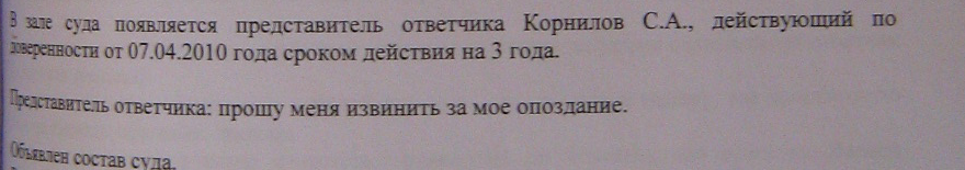 Т.е., получается, что мы должны были доказать, что до 14.12.2011. она НЕ ЗНАЛА о состоявшемся решении.