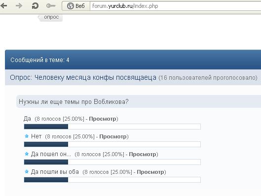 Отчего же ... модератор то решилНадо ли забанить Вобликова после всего, чего он наговорил за последнее время?- цы