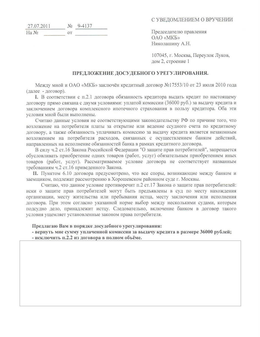 Имею большое желание получить с МКБ уплаченную комиссию. Ессно в договоре все оформлено как обычно.
