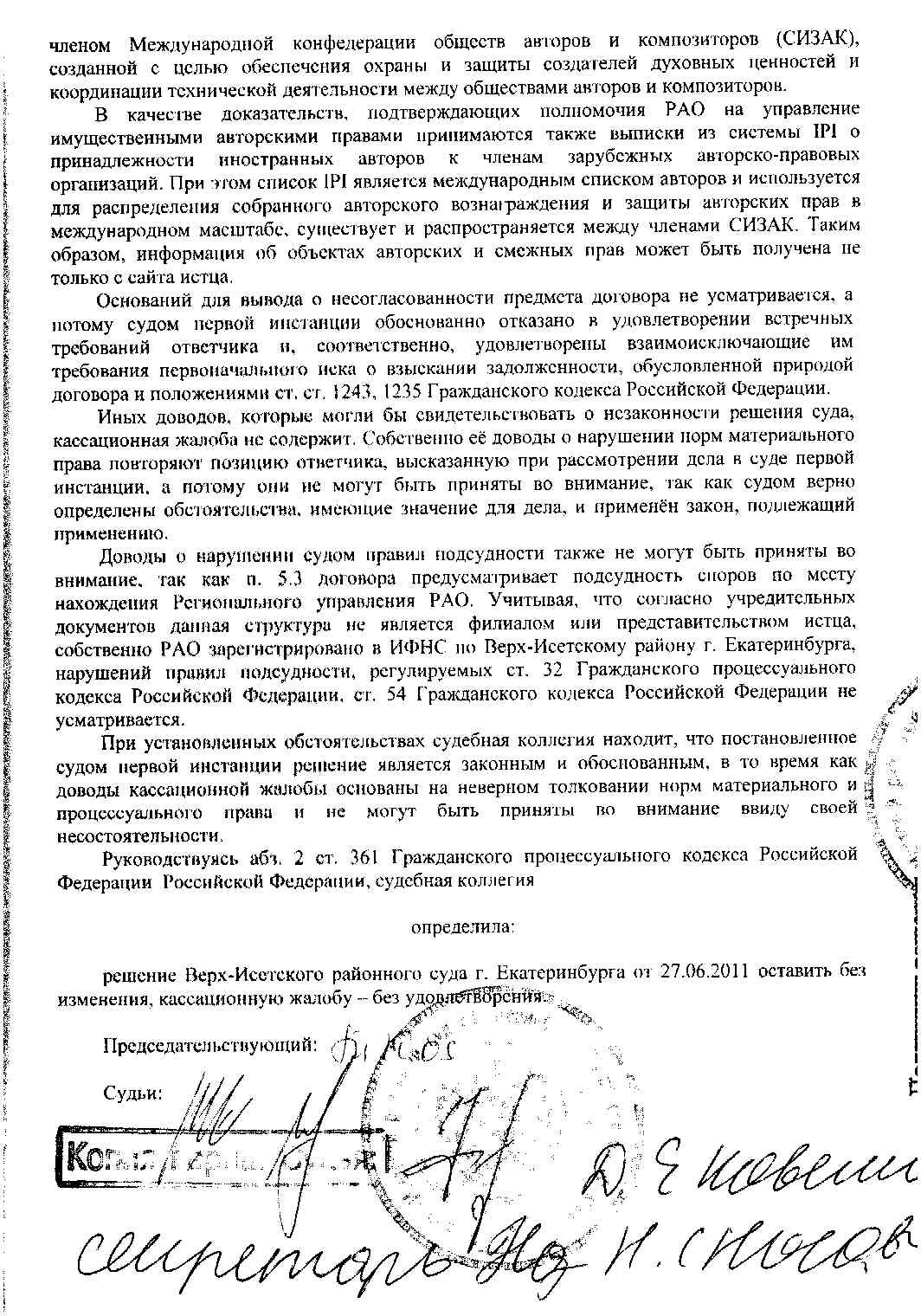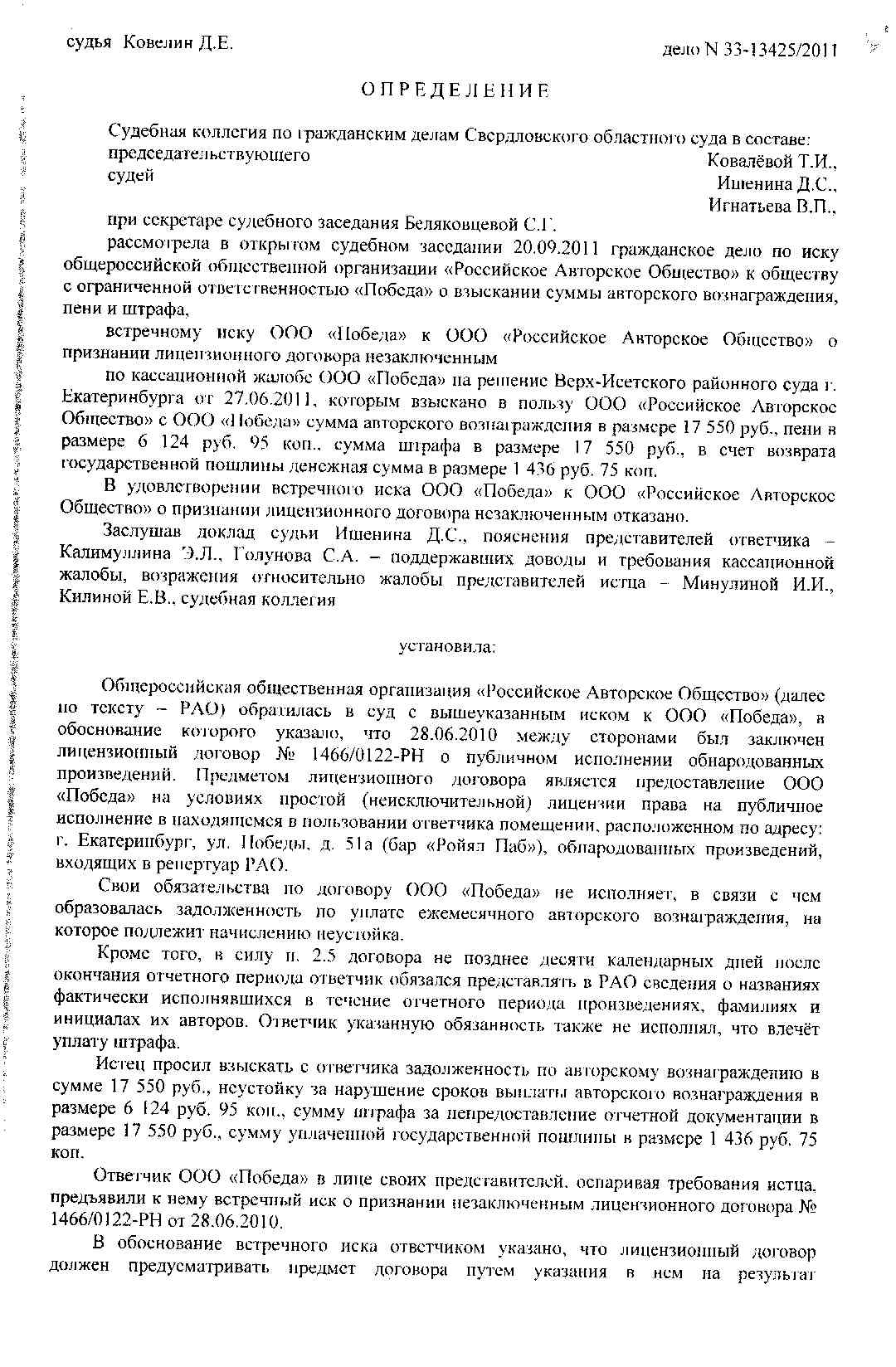 Для тех кто уверен в законнности решения и бредовости очередного опуса ВАВLAW приведу известную мне альтернативную судебную практику: