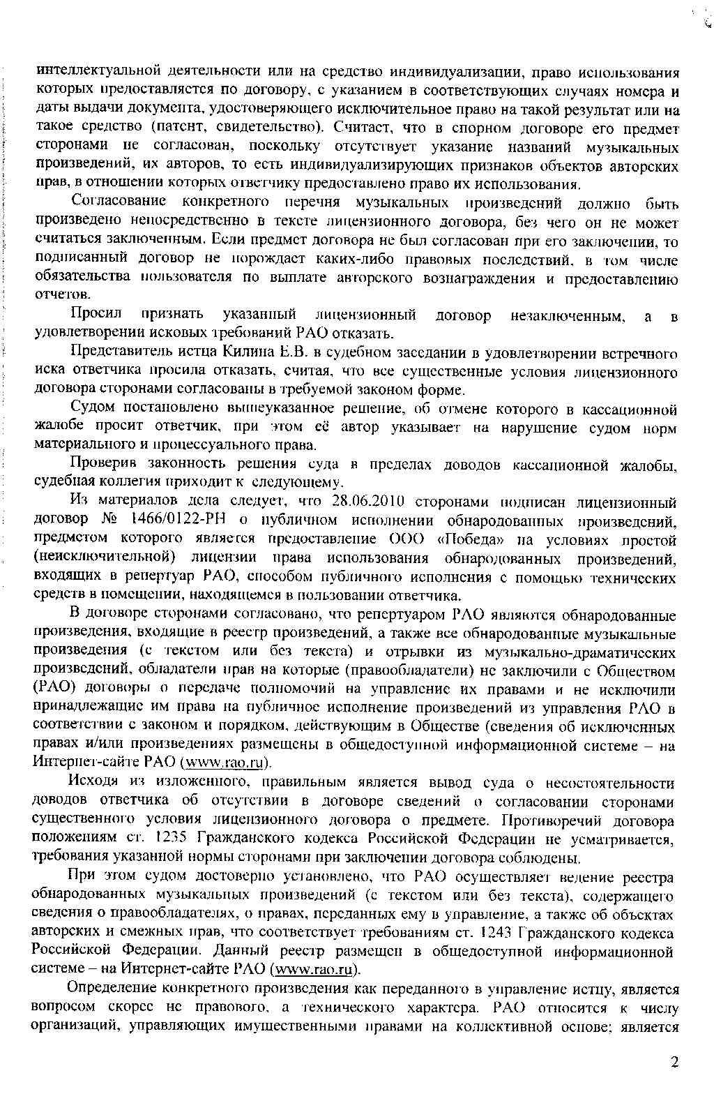 В данном случае отсутствие практики по установлению условий договора с РАО судом, и более того, наличие негативной практики, не должно нас, подчеркну именно нас, останавливать. Поскольку есть совпадения - требования разумности и наличие аргументов. Основная сложность заключается в том, что реально действующему пользователю безусловно зачастую проще отмахнуться от юридических измышлений и заплатить, а не ввязываться в судебный срач с непрогнозируемым результатом. Как и получилось у меня, когда я бодался с ВОИСом, правда там ВОИС просто отстал от клиента, мало ли в Питере других кафе с ресторанами. И заставлять клинета изображать из себя Александра Матросова у меня не было, да и нет ни какой возможности.