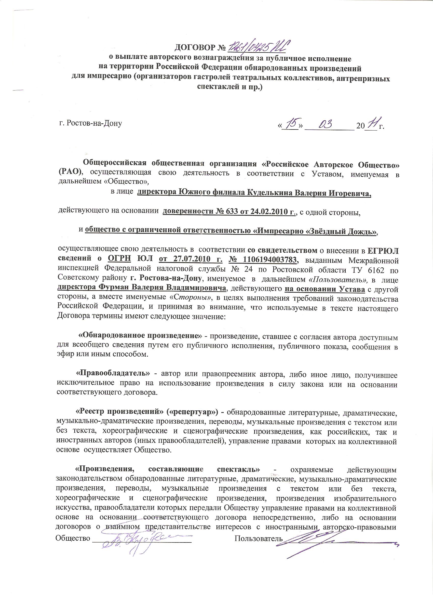 И напоследок. К вопросу об обязательности для ОКУПов заключения договоров. Задумался, а какие такие могут быть эти самые достаточные основания для отказа в заключении договора. Единственное, что пришло в голову это отсутствие лицензии на вещание у пользователя, который захотел заключить договор на передачу в эфир, ничего другого в голову не приходит