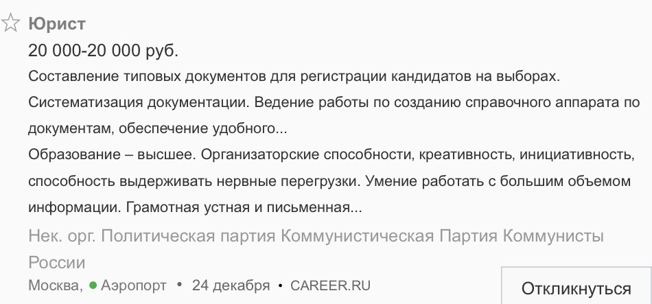 Увидел вакансию и вспомнил юрклуб.