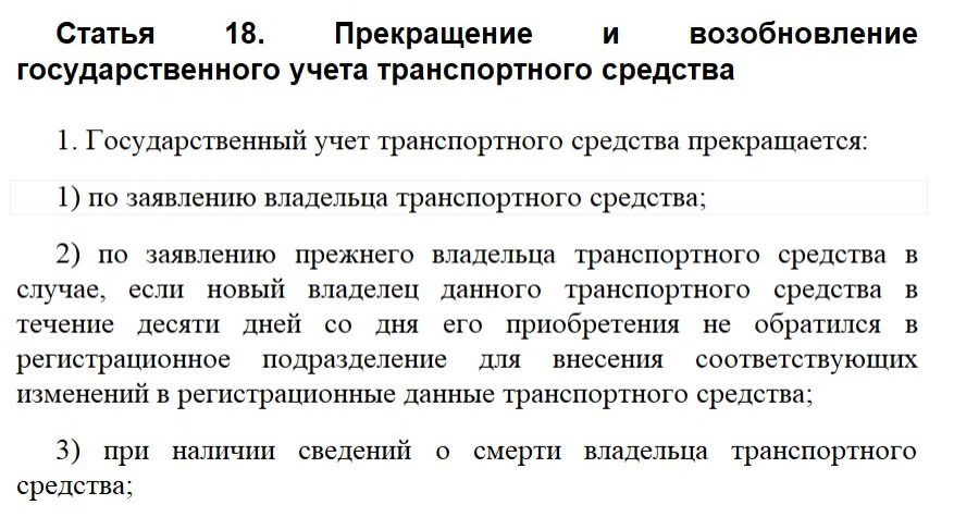 Pastic, какой-то подвох чую, но спрошу - а пп. 2 п. 1 ст. 18 закона о регистрации ТС чем нехорош?