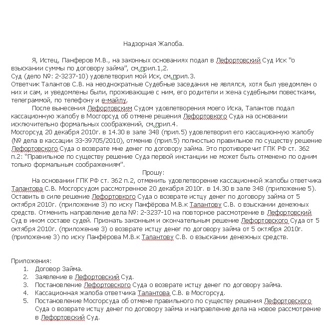 Прилагаю к этому посту свою жалобу надзорную и кассацию обжалуемую ею, как считаете, удовлетворят?