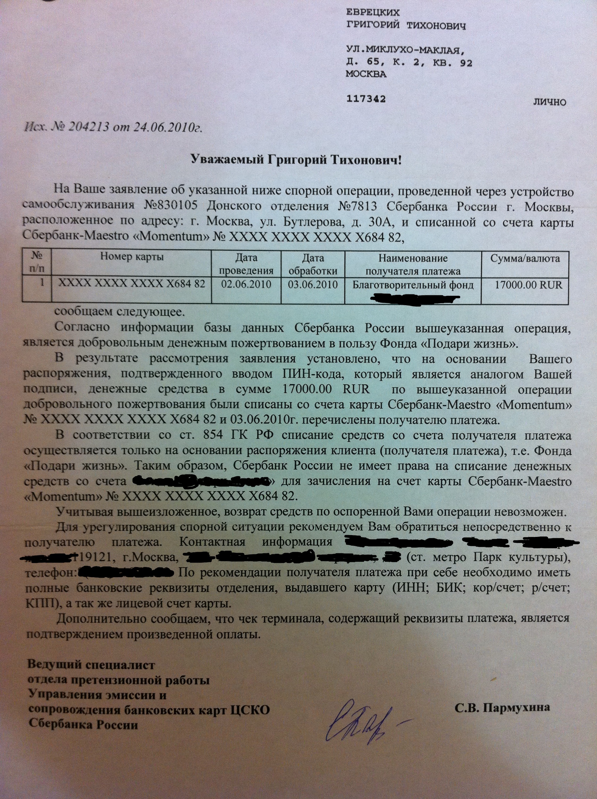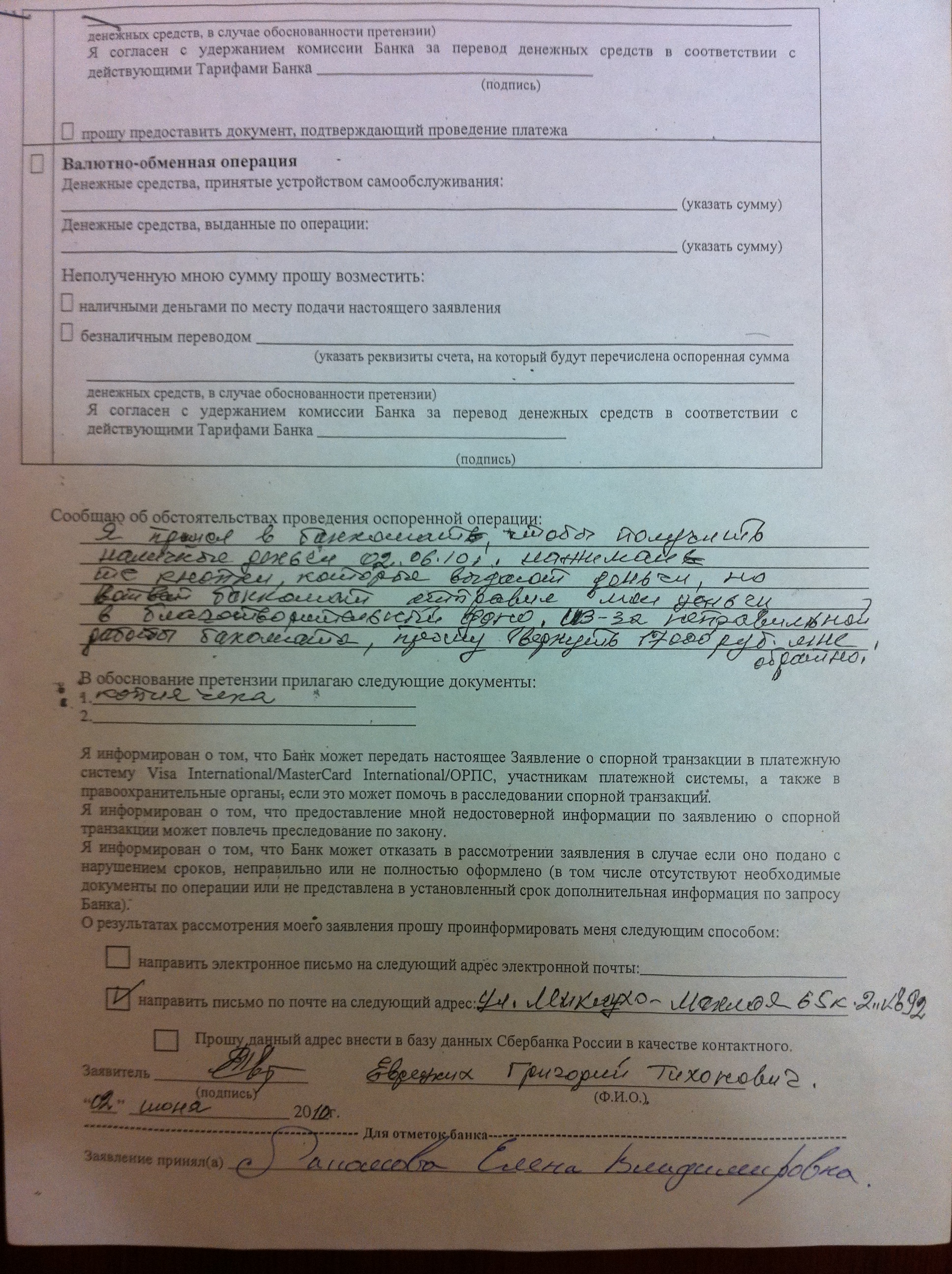 И в чем была ошибка?02.06.2010г. совершил ошибочный перевод денежных средств с карты, сразу же написал заявление о спорной ситуации в надежде что банк отменит операцию по карте.