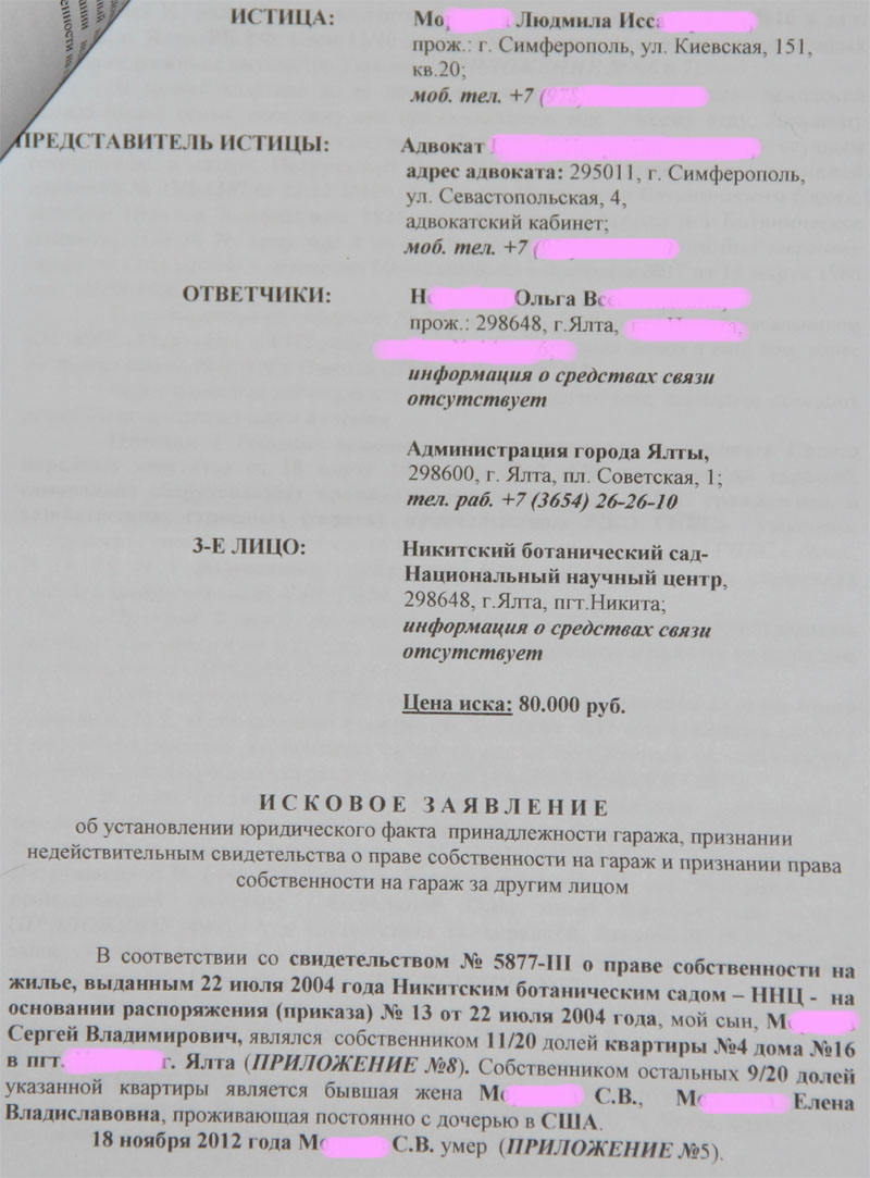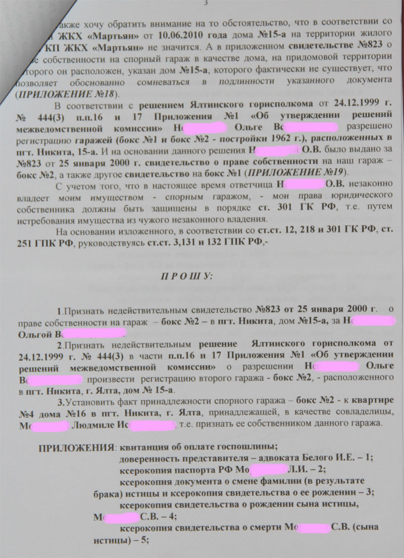 Но недавно пришла повестка в суд от дочери этой пары, она же сестра их сына, продавшего гараж. Дочка хочет признать необоснованным переход собственности к моей маме. Сканы прикладываю.