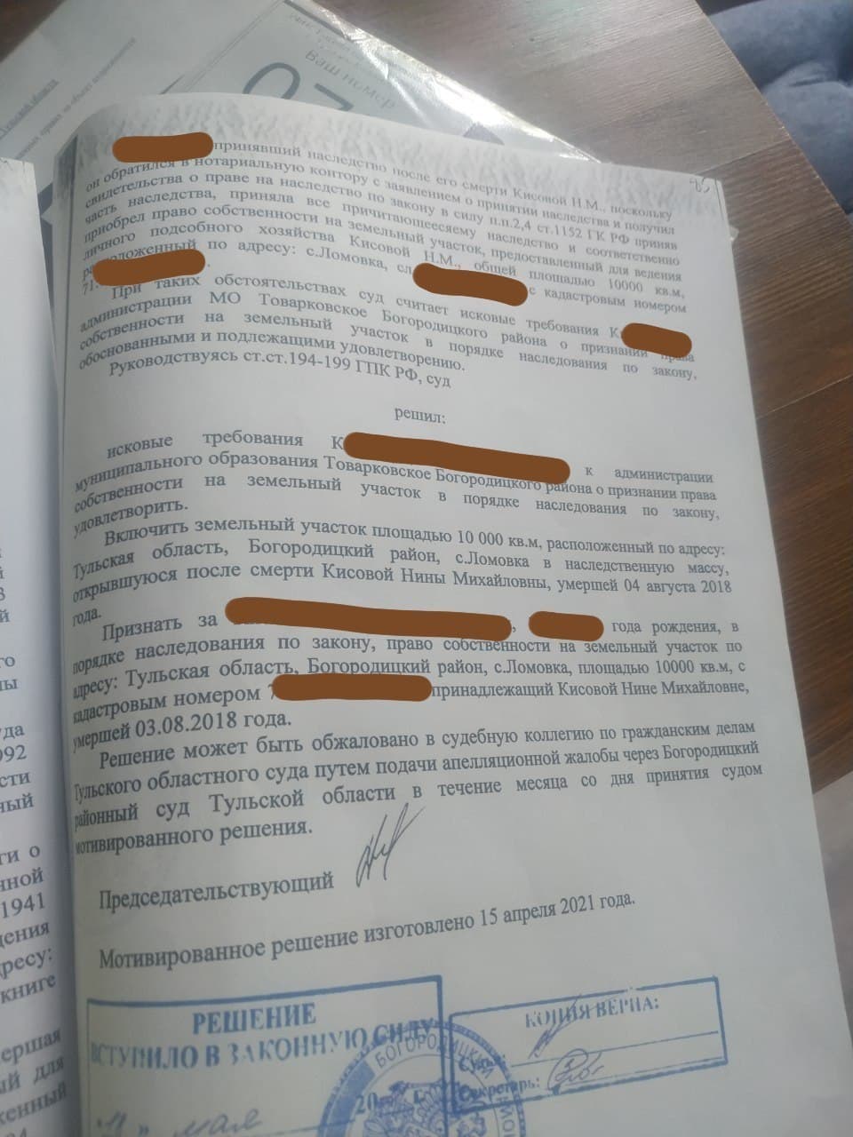 Вступил в наследство на дом 4.08.2018года.Земельный участок имел два права собственности (с исправлениями,в архиве сельсовета) поэтому право собственности на него получил через суд. Решением суда участок был включён в наследственную массу и признан за мной в порядке наследования по закону.