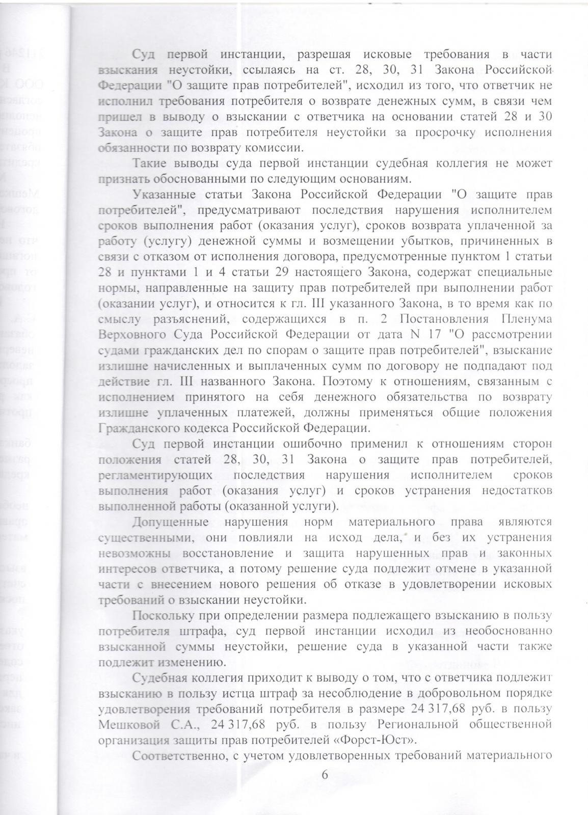 При новом пересмотре дела суд апелляционной инстанции пришел к выводу о том, что (дословно) к правоотношениям сторон не подлежат применению положения главы III Закона о защите прав потребителей.