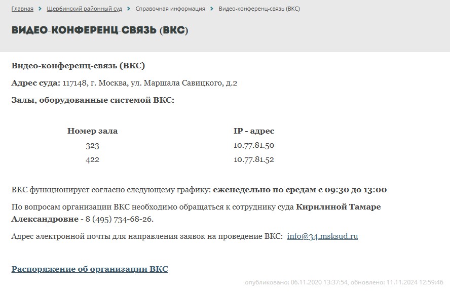 видеоконференц-связи подано после размещения на официальном сайте арбитражного суда в