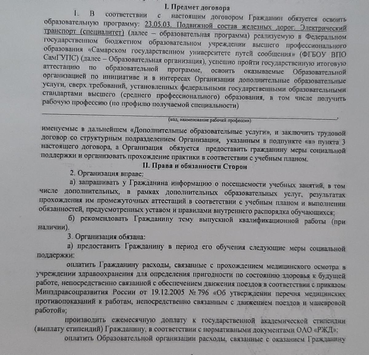 В договоре написано, что РЖД предоставит нам место работы, но не указано кем.
