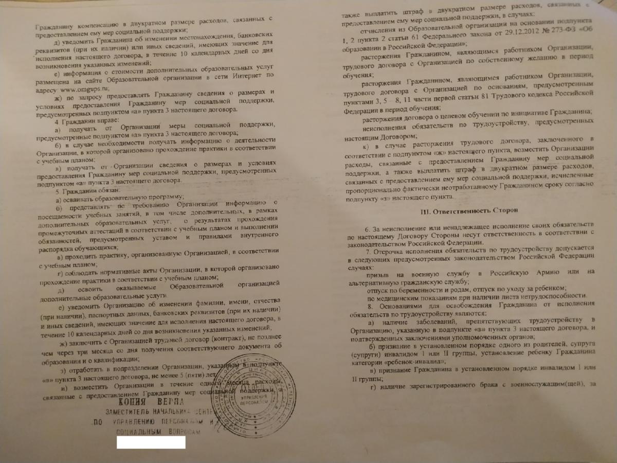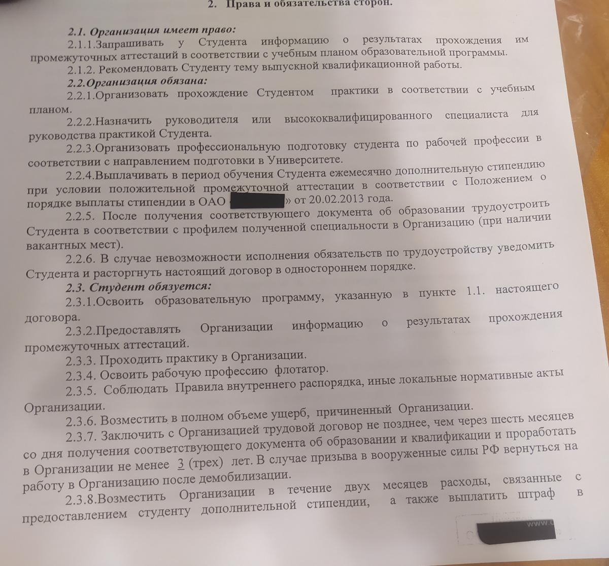 Договор читали. И так как мы не знаем как правильно должен быть составлен договор,думали что всё нормально. Тогда,нам ничего не поясняли,да и мы не спросили, а верили,что нам действительно предоставят инженерную должность как и обещали на словах. А с 4 курса уже приходя туда,стали говорить о рабочих местах. А рассказали нам о внутренних правилах  когда заканчивали 5 курс. Когда мы начали говорить " какая рабочая должность,ведь он будущий инженер?",только тогда нам сказали,что есть внутренние правила и мы до года должны отработать...показали на окно,где мы увидели мальчика,который в мороз долбил лёд....они продолжив добавили - вот это выпускник прошлого года с красным дипломом. Я чуть не расплакалась. Мы не юристы,поэтому нас изначально ничего не смутило и мы по простому,поверили.