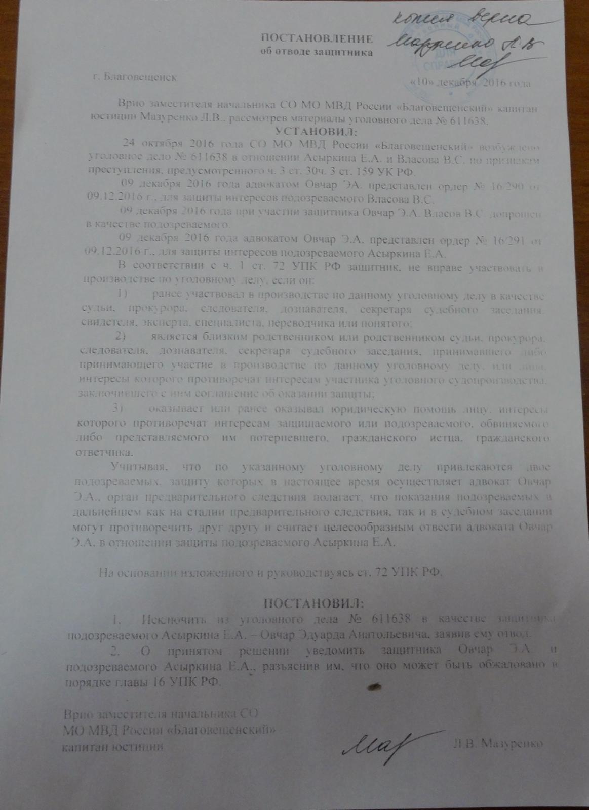 на закон, согласно которому защитник должен присутствовать при отказе обвиняемого от защитника.