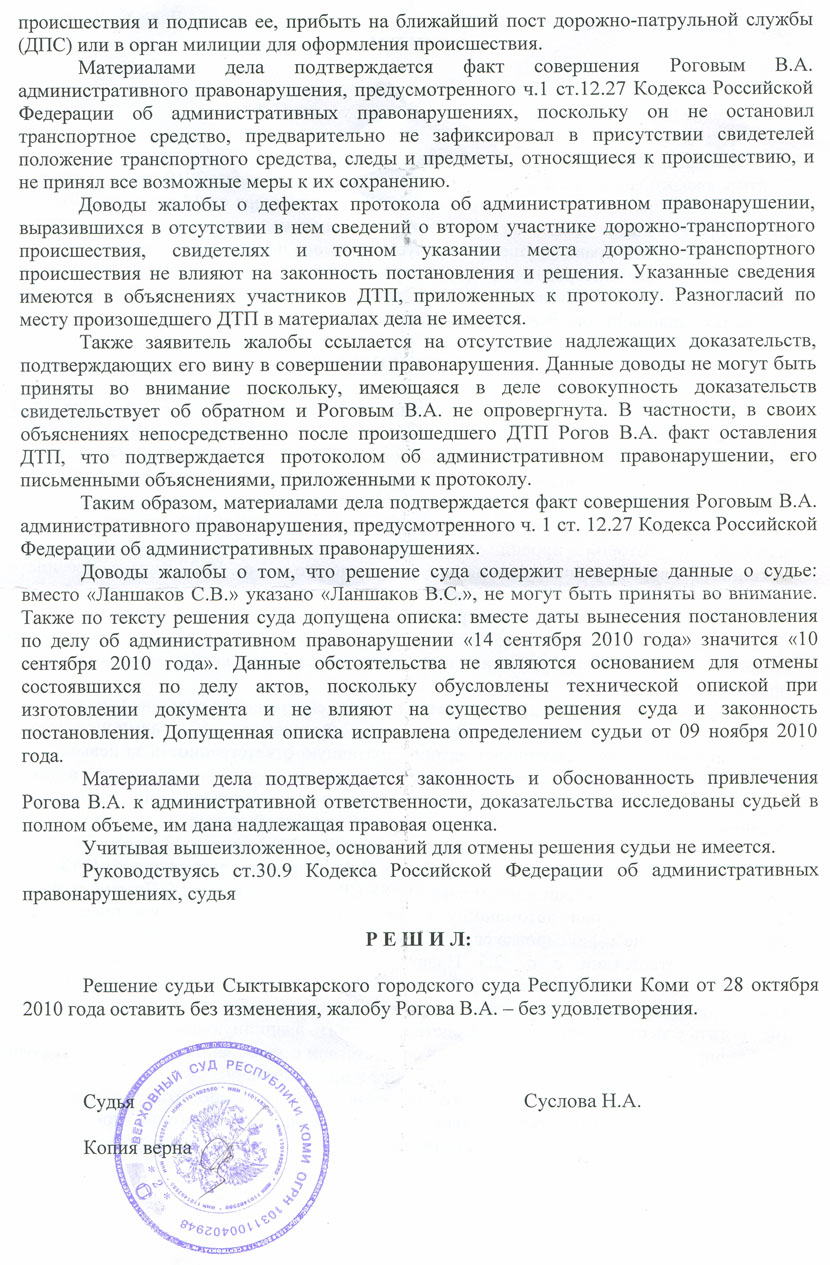 Так странно, судья исправила в нескольких(!) местах решение городского судьи и оставила постановление в силе.