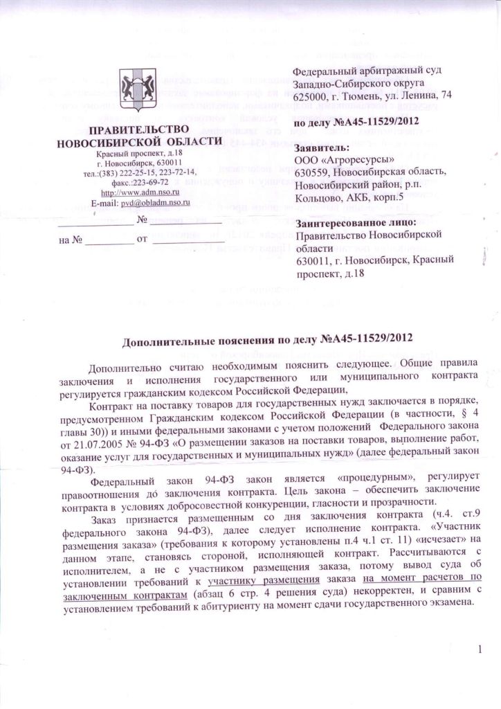 Ответчик впринципе прав в отношении требований к учестнику торгови, действительно в этой части противоречий нет, но вот только Правительство НСО не является СТОРОНОЙ договоров купли-продажи заключенного между: