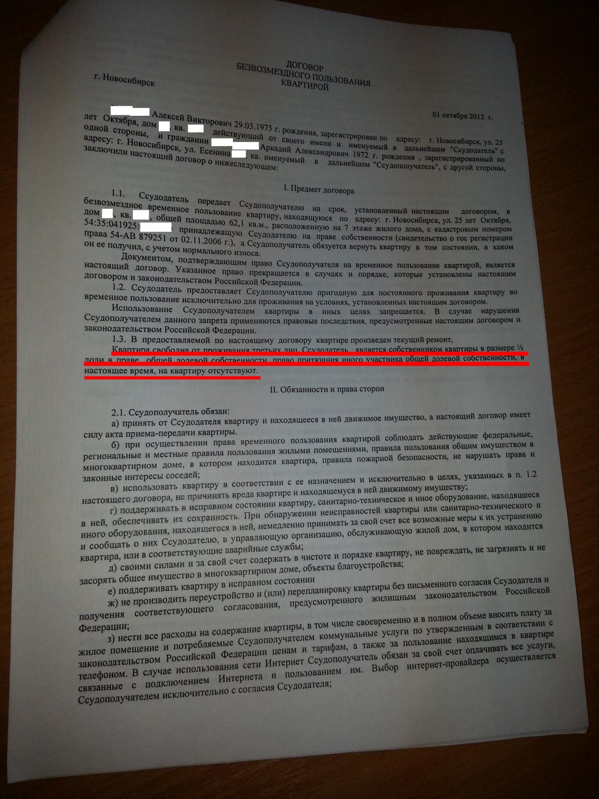 Прочитайте первый пост в теме и судьба договора станет вам известна.не вижу причин взыскивать НО с жильца, договор с одним из хозяев был заключен в устной форме, условие этого договора проживание на безвозмездной основе.