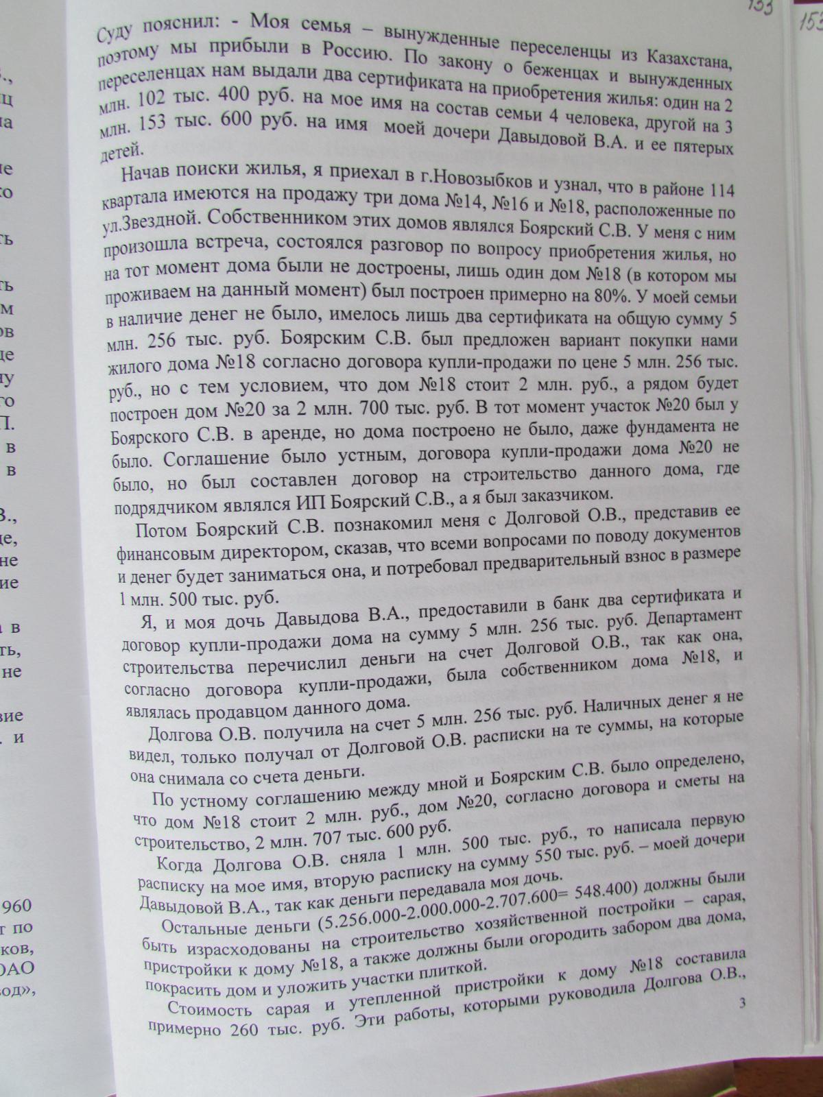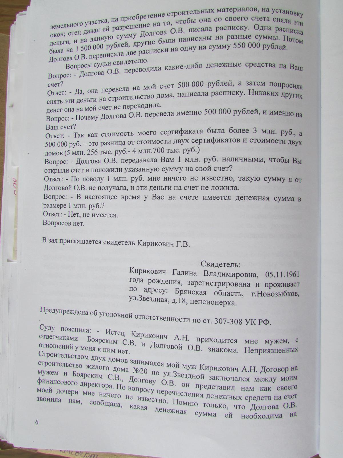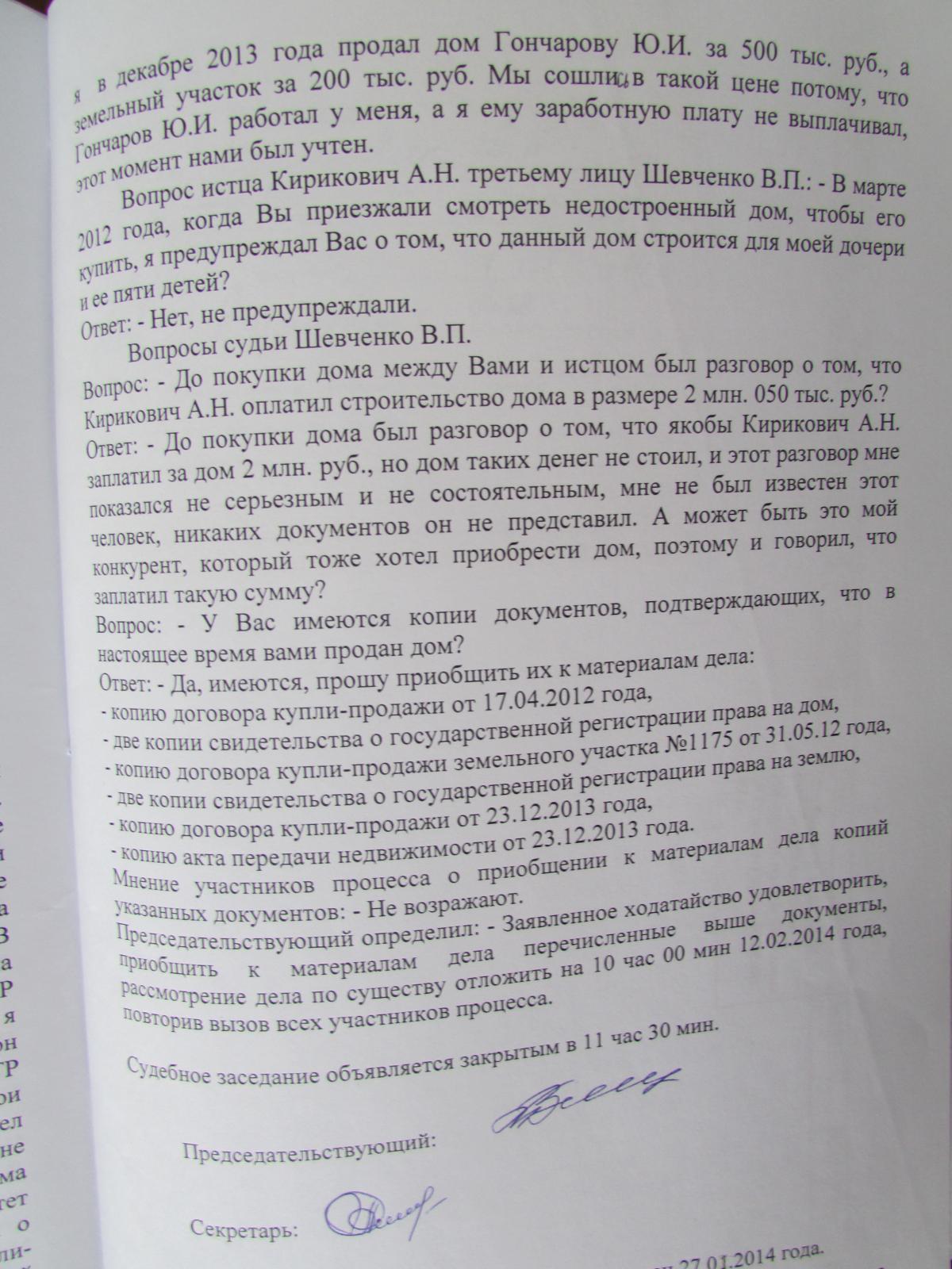 Обе стороны подтверждают, что они ему понадобились для строительства дома. Но я не могу говорить, что это достаточное доказательство, здесь суду решать.