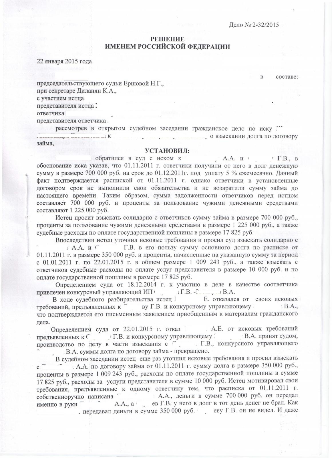 ходе заседания Петров указывает на то, что обязательство заемщиков не носит солидарный характер, поскольку в расписке нет об этом прямого указания, не имеется закона, иного нормативного акта, по которому их обязательства носят солидарный
