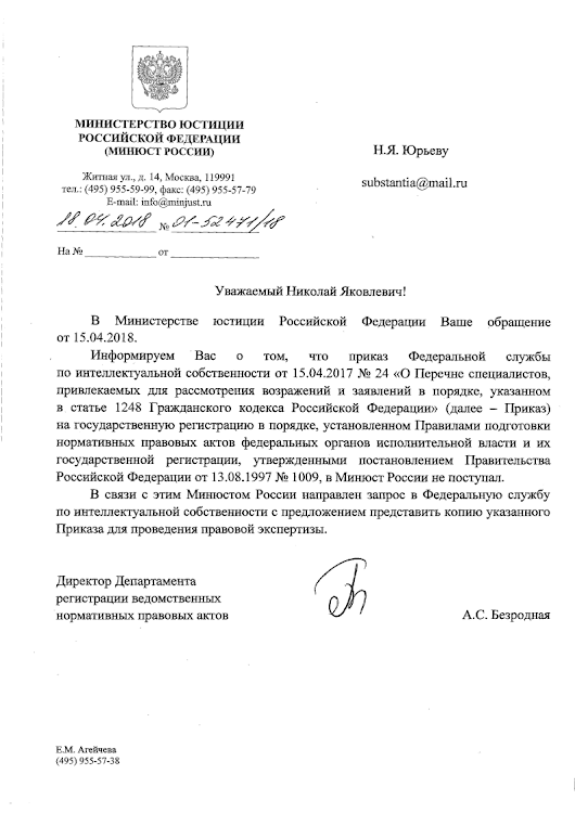 Согласно Правилам ППС, г-н Седов в заседании является никем, поскольку он не мог принимать и не принимал решение о выдаче патента (не работал во ВНИИГПЭ) и при рассмотрении возражения не мог высказываться в том процессуальном качестве, которым его незаконно наделила коллегия ППС. В действительности решение о выдаче патента принимали г-жа Полякова С. Л. (еще работала, когда я покинул ФИПС) и Уткина Е. А. (уже не работала на момент рассмотрения возражения).