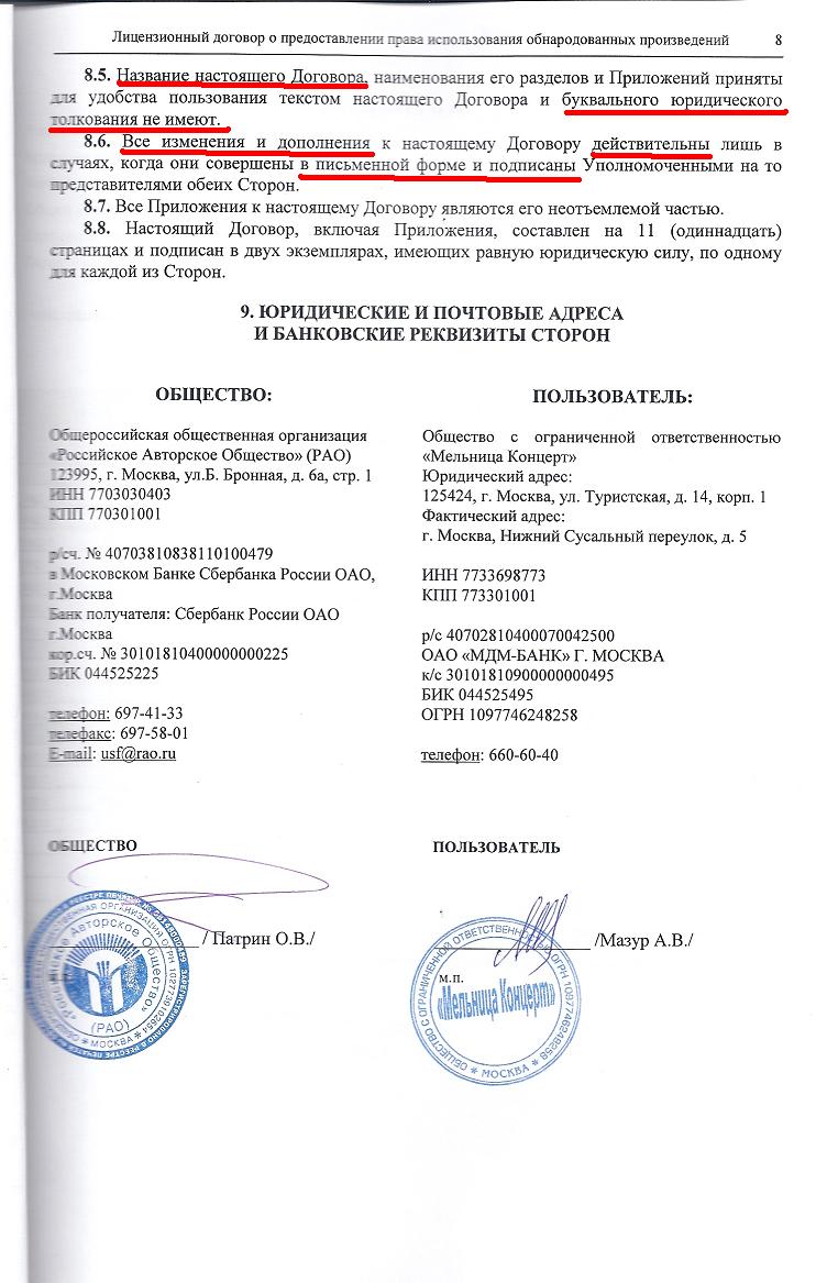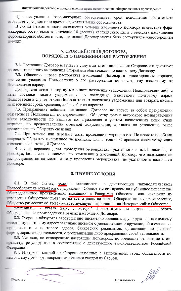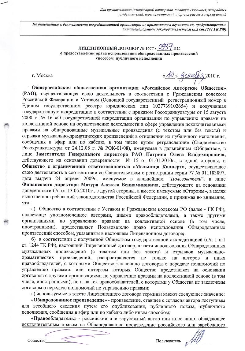 Это каким-таким боком на вопрос незаключенности договора влияет наличие полномочий на его заключение???Для меня остается открытым вопрос может ли РАО представлять интересны иностранных авторов и надо смотреть договоры между РАО и иностранным ОКУПом; это может повлиять на право РАО собирать вознаграждение, как следствие, законность решения суда;