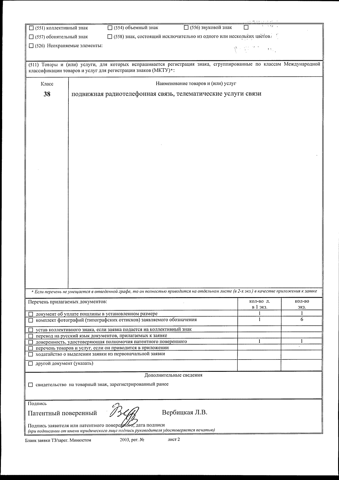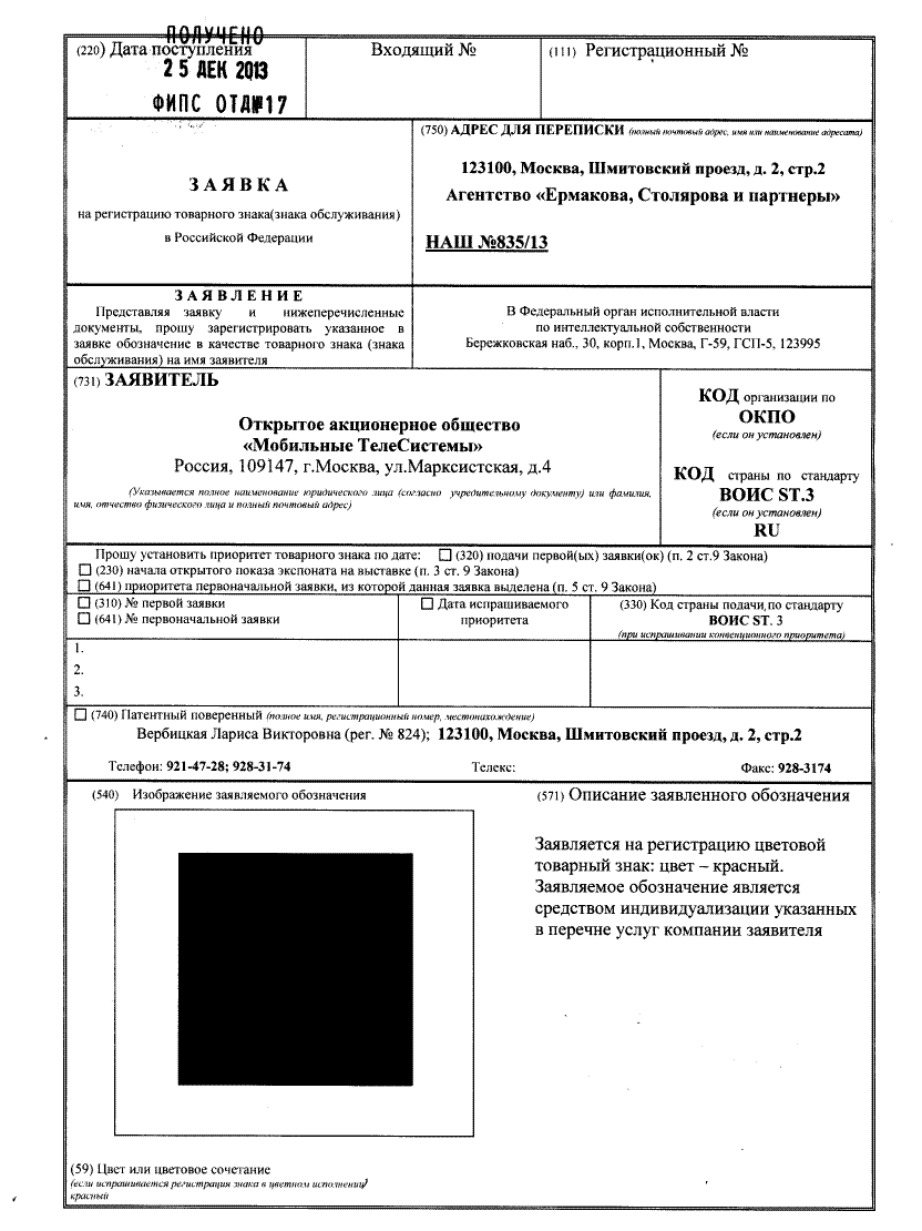 Запись в Реестр о том, что цветовой знак представляет собой красный цвет, соответствующий Pantone 485, внесена, остальное тлен.
