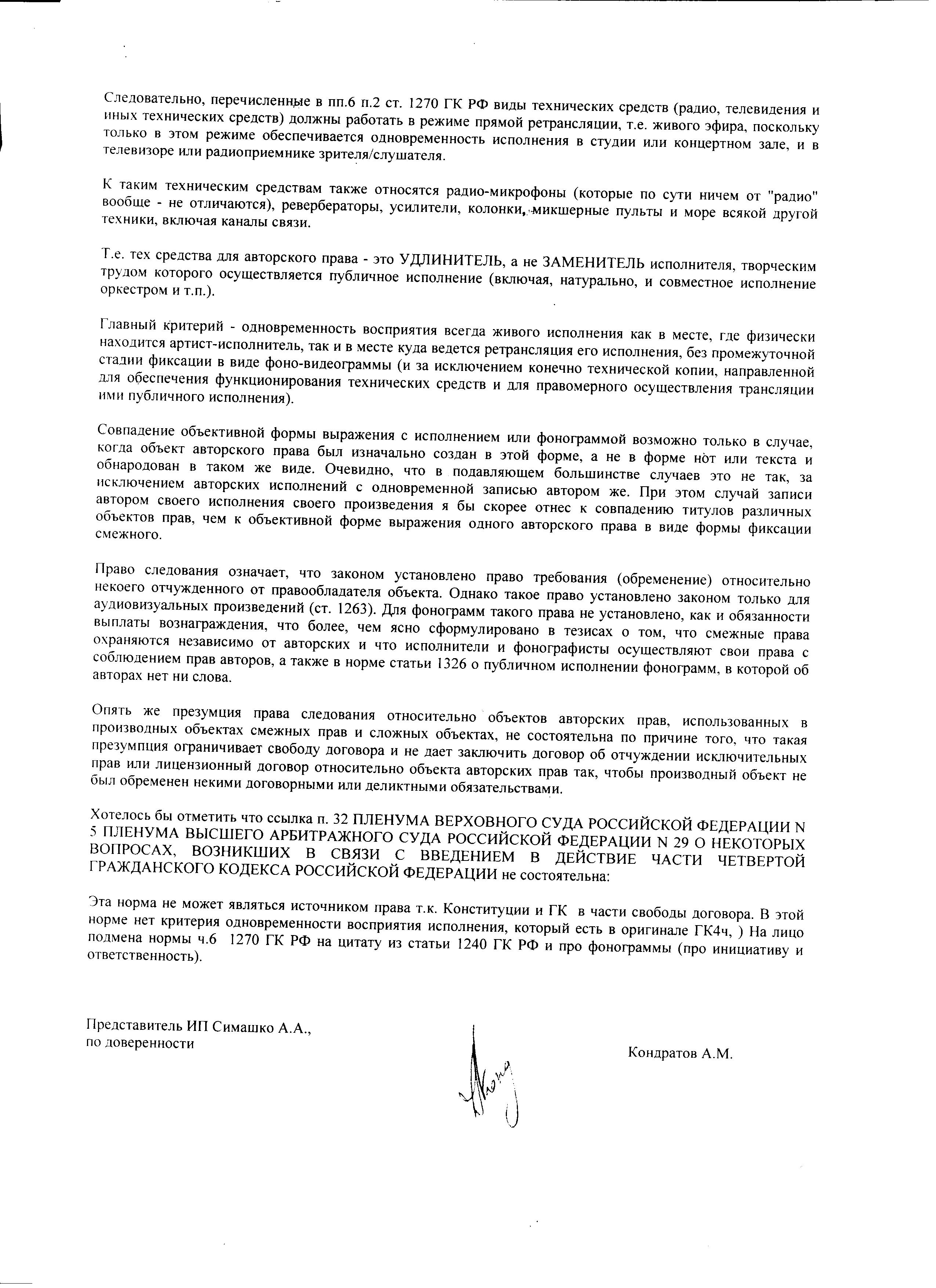 Я какого хрена тут в профильной ветке выкладываю все аргументы и свои отзывы с исками? Чтобы потом некоторые товарищи пытались доказать, что публичное исполнение фонограммы не образует состава пп.6 п.2 статьи 1270?