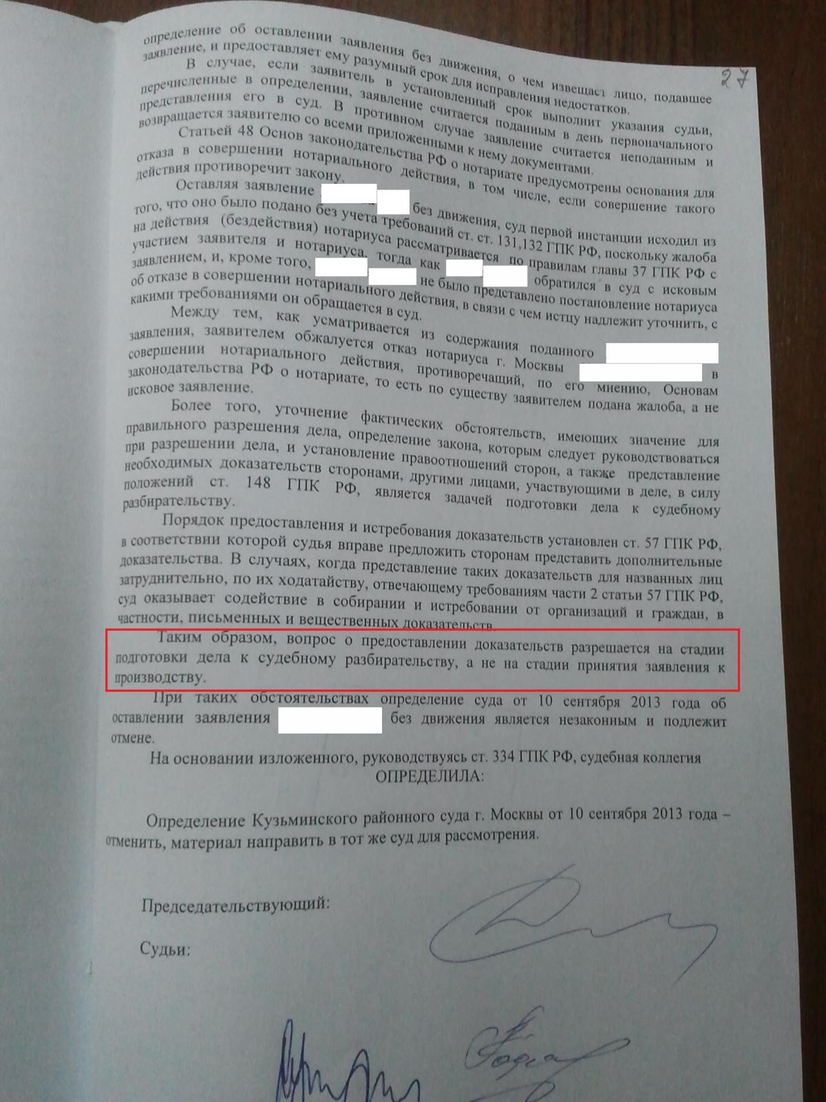 сегодня ознакомился с определением Мосгорсуда по жалобе на вышеприведенное определение, которое отменено как незаконное :)